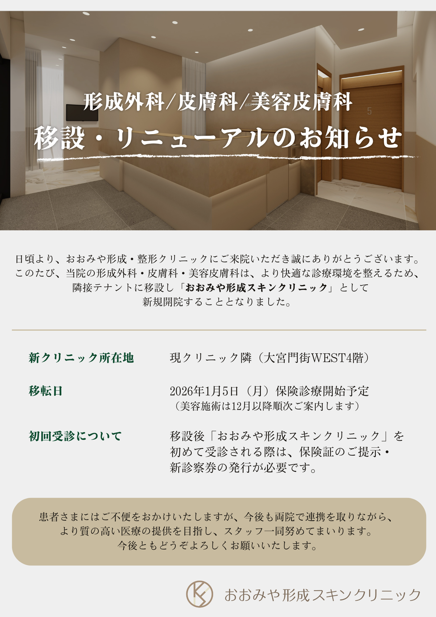 - 形成外科・皮膚科・美容皮膚科 水曜日診療のお知らせ